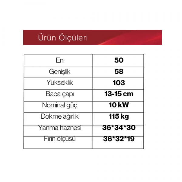 Üç tarafı camlı %100 Pik döküm 1500 C dayanıklı yanma haznesi - seramik cam Isıya dayanıklı endüstriyel boya Üç noktadan hava akış sistemi Kül silkelemeli yatak mekanizması Buhar koku tahliyeli termostatlı çift kat fırın