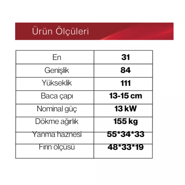 Üç tarafı camlı %100 Pik döküm 1500 C dayanıklı yanma haznesi - seramik cam Isıya dayanıklı endüstriyel boya Üç noktadan hava akış sistemi Kül silkelemeli yatak mekanizması Buhar koku tahliyeli termostatlı çift kat fırın